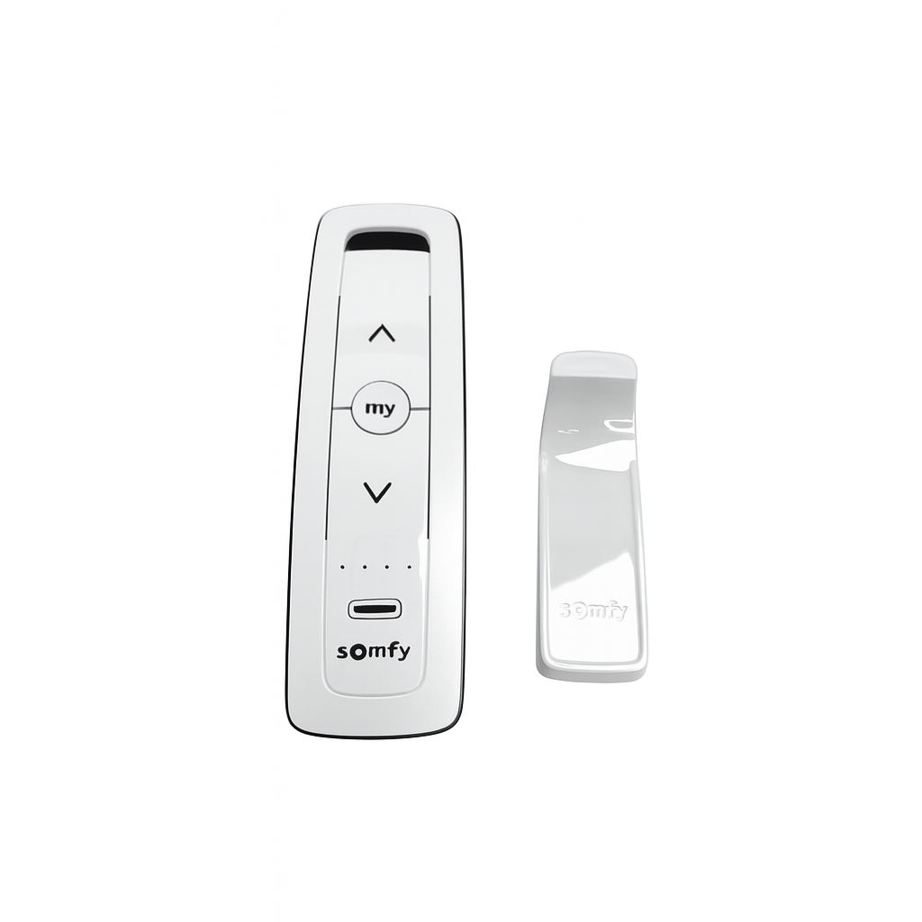 Der Situo 5 io II Pure ist ein moderner, 5-Kanal-Handsender von Somfy zur Steuerung aller Geräte mit io-homecontrol-Technologie – darunter Rollläden, Jalousien, Markisen, Beleuchtung oder auch io-kompatible Heizsysteme. Das minimalistische Design in Pure-Weiß, intuitive Tastenführung und kompakte Maße machen ihn zur idealen Lösung für die komfortable Steuerung moderner Wohn- und Arbeitsräume.