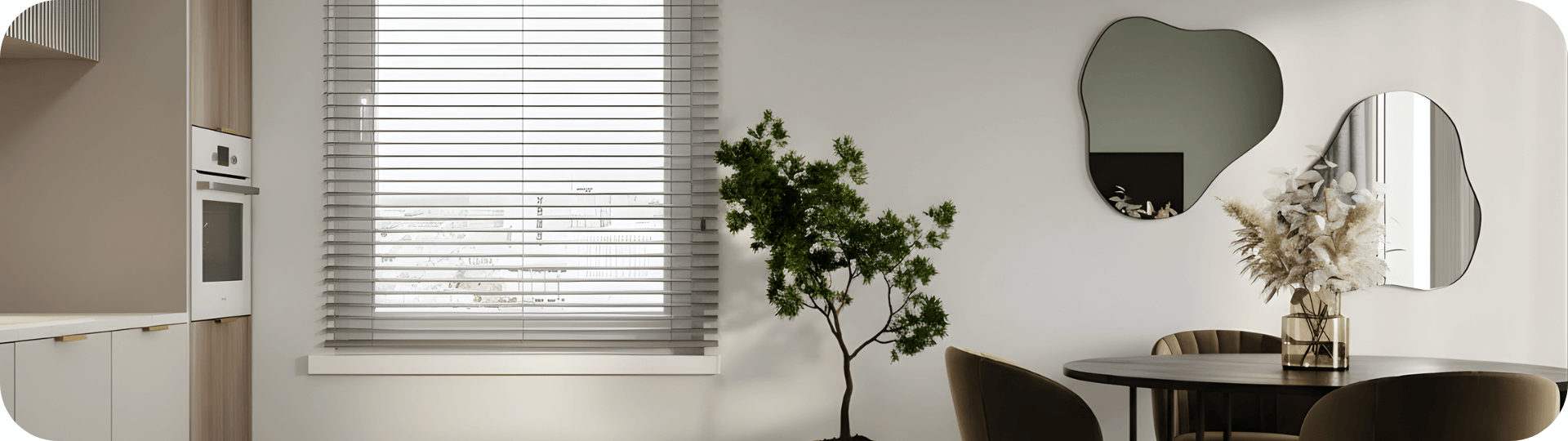 Unsere horizontalen Aluminium-Innenjalousien mit 50 mm Lamellen eignen sich für Wohnzimmer, Küche, Bad, Büro und Gewerberäume. Dank der feuchtigkeitsbeständigen Oberfläche sind sie auch ideal für Feuchträume wie Bad oder Küche – selbst über Spülbecken oder Arbeitsplatte.