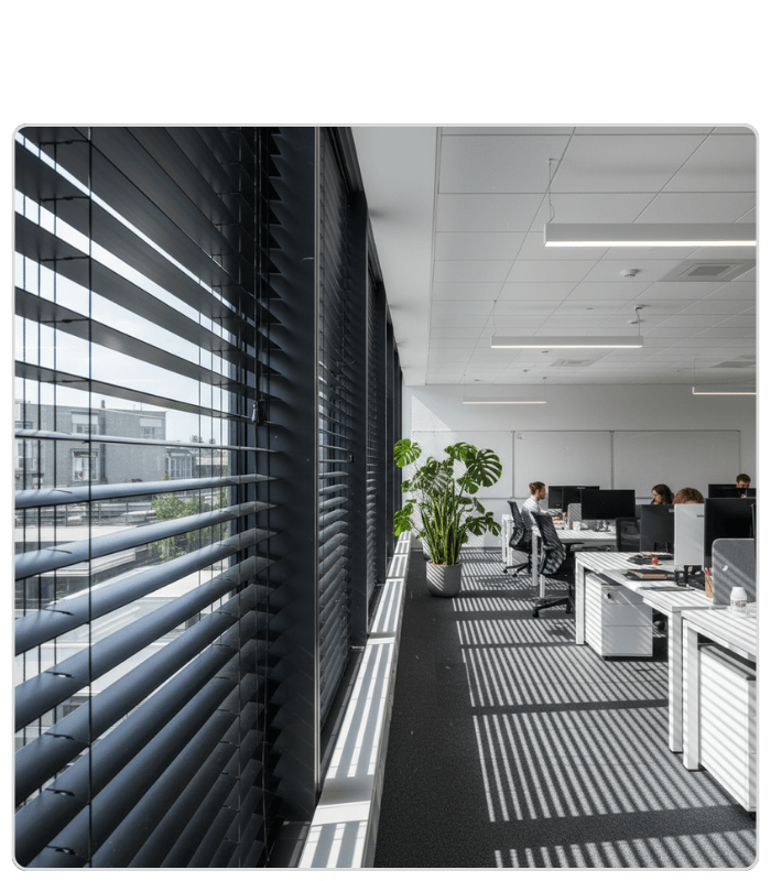Die 50 mm Lamellen eignen sich ideal für großflächige Fenster, wie z. B. Balkonfenster, Terrassentüren, bodentiefe Fenster oder große Fensterfronten in Gewerberäumen.