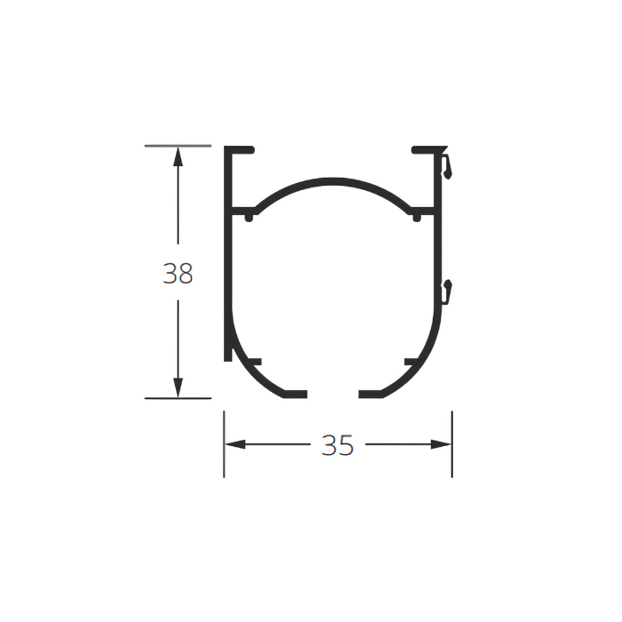 • Maße der Oberschiene (Profil): 38 mm × 35 mm