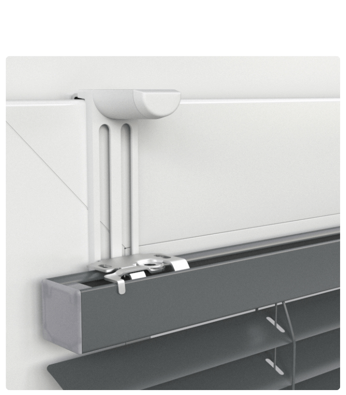 Der abgesenkte Klemmträger wurde speziell für eine einfache und schnelle Montage von Jalousien entwickelt. Damit können Sie Ihre Jalousien sicher am oberen Fensterrahmen befestigen – ganz ohne Bohren oder Beschädigung des Fensterrahmens.