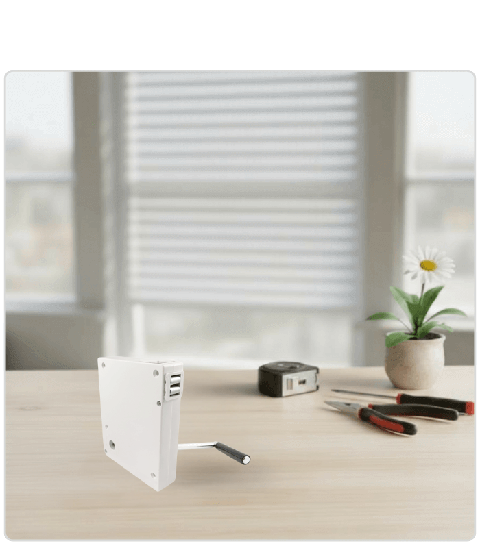 Der Schnur Kurbelwickler in Weiß ist ideal für Außenrollläden, bei denen eine manuelle Bedienung über eine Schnur bevorzugt wird.