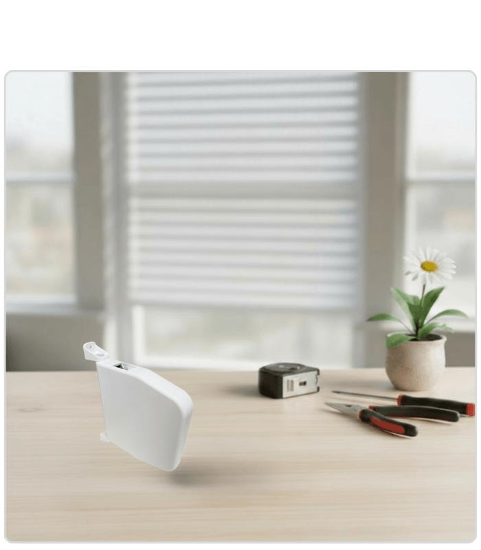 Das Gehäuse aus robustem Kunststoff in klassischem Weiß fügt sich harmonisch in jedes Fensterdesign ein. Der integrierte Feder- und Bremsmechanismus aus Stahl ist werksseitig vorgespannt und somit sofort einsatzbereit.